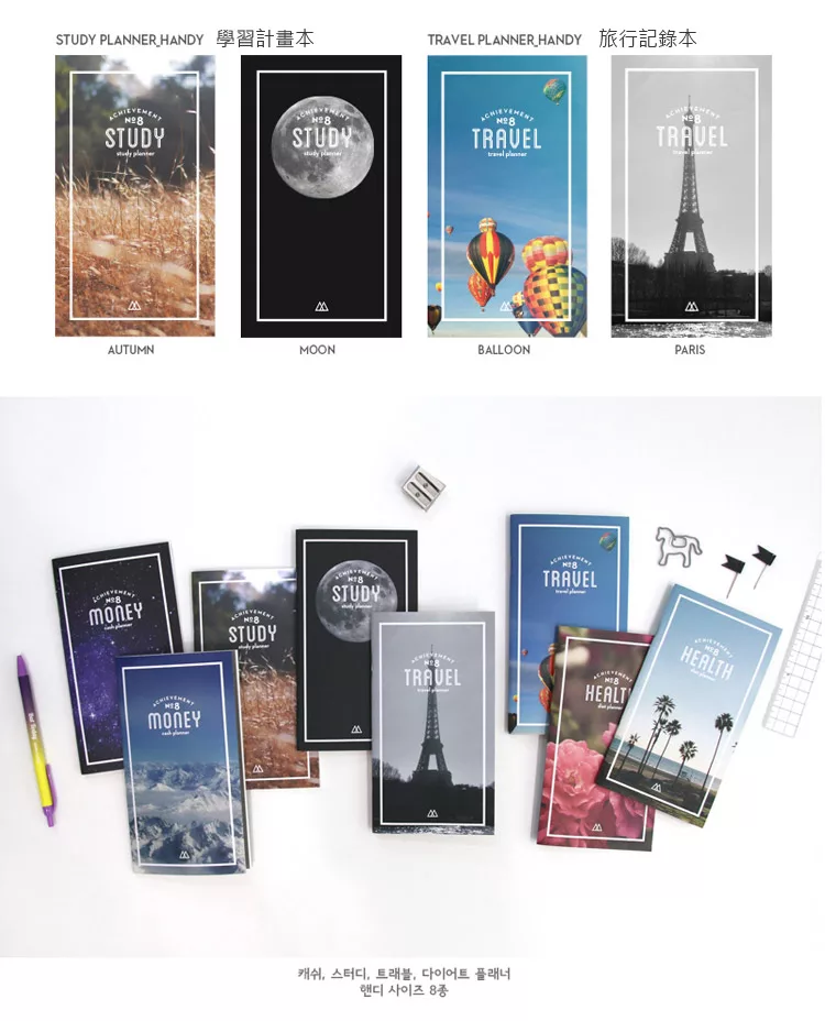 Health-Diet 健康減重記錄本、Study 學習計畫本、Cash 記帳本、travel旅行記錄本