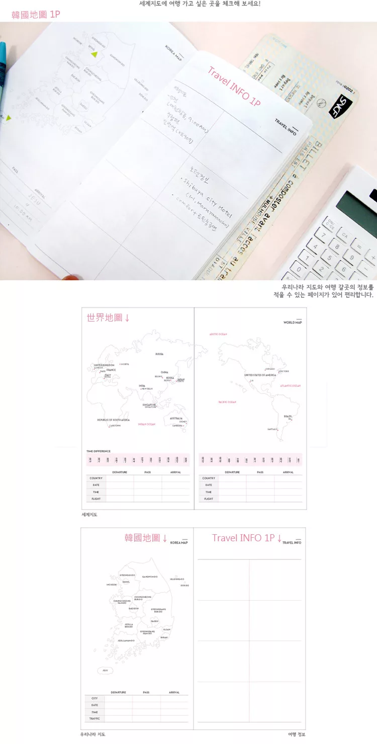 【內頁功能頁有】:介紹頁1P+世界地圖2P+韓國地圖1P+Travel INFO 1P+Packing List 1P