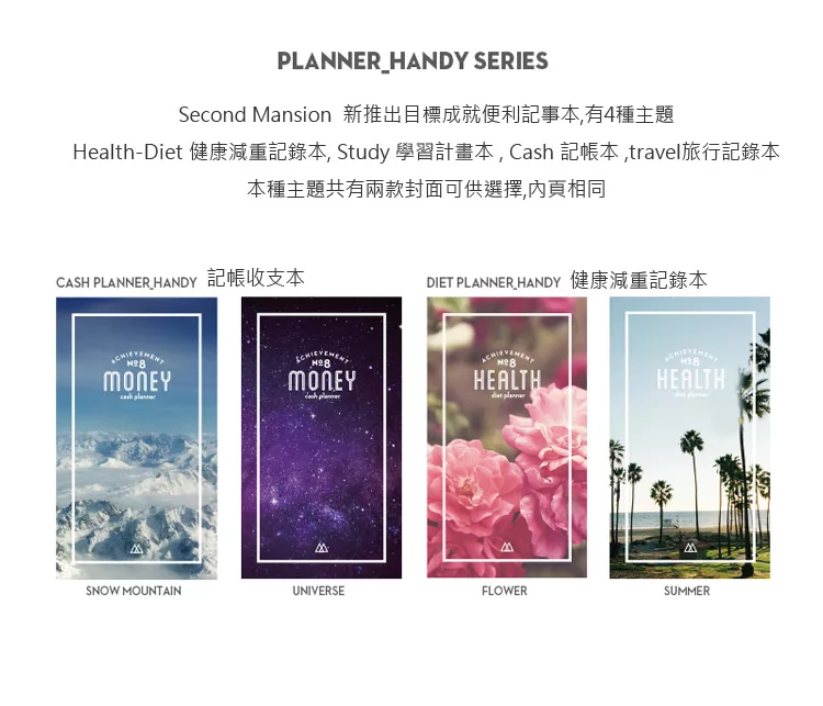 Second Mansion 新推出目標成就便利記事本,共四種計劃主題